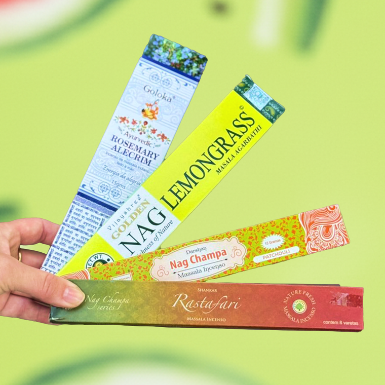 Descrição: Combina o perfume floral do Nag Champa com o toque terroso e sensual do patchouli. Ideal para introspecção, espiritualidade e momentos de conexão profunda.